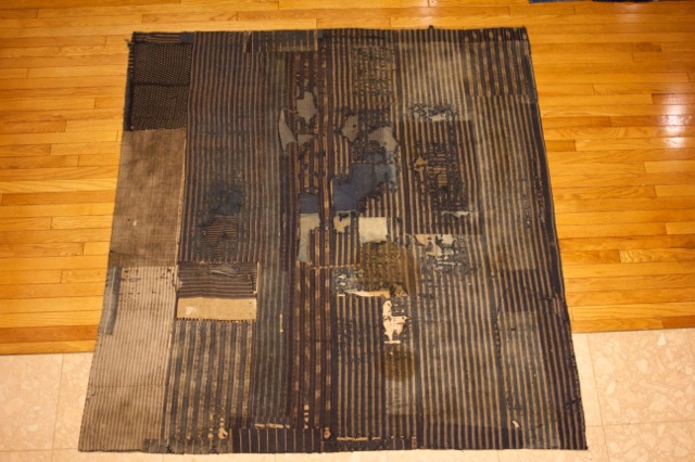 JR The fabric is between 80 and 100 years old. All the fabric runs vertically, the way it did on the loom. If you look closely you can see where it used to be part of a kimono or a piece of clothing before it was a floor covering. It’s made from generations of one family’s fabric. It’s beautiful to me because there is no other one like this.