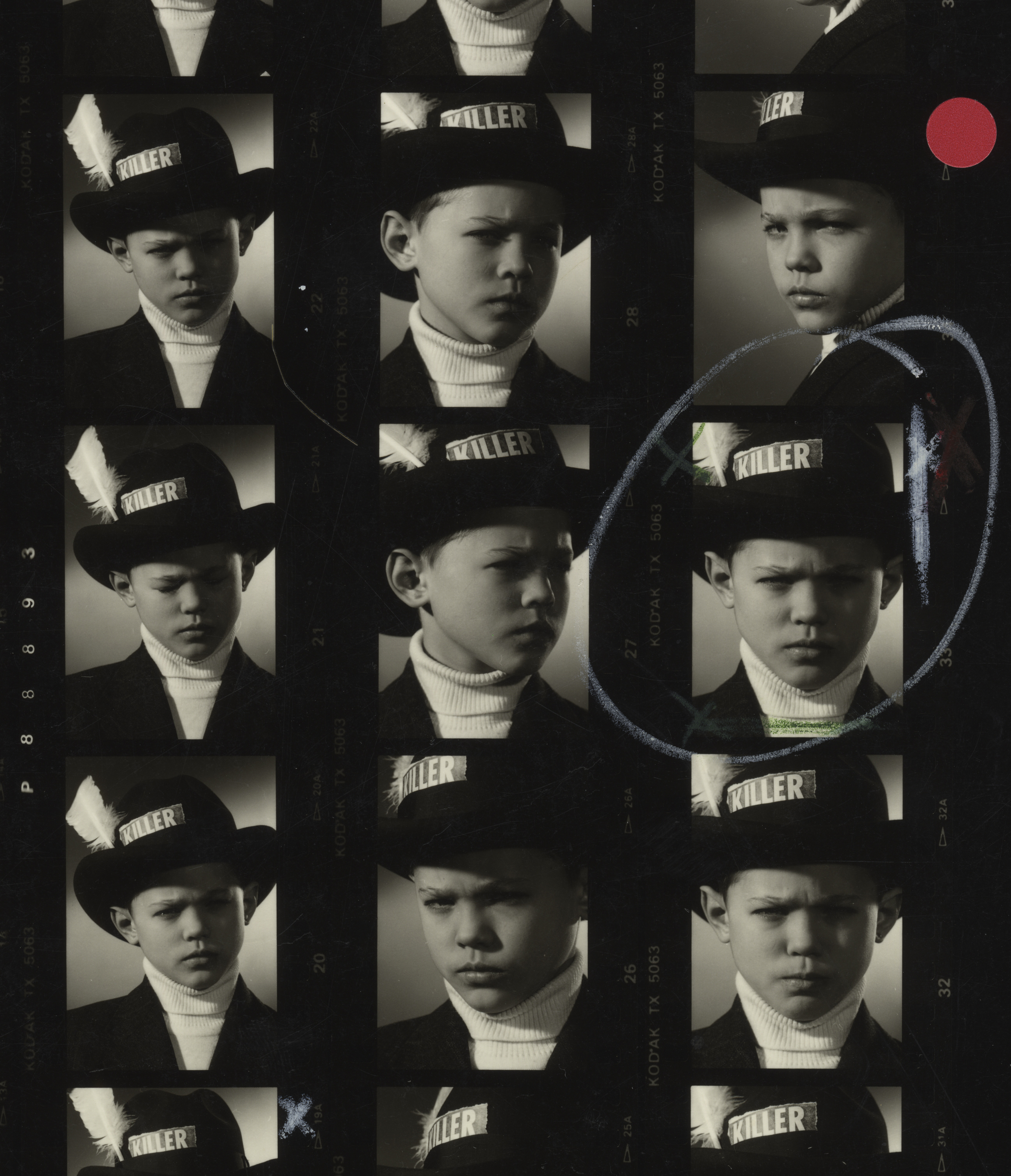 JM Nothing was ever commissioned at the Face. It wasn’t like these days when you have an editor telling you what to do. I had a good relationship with Nick Logan, the publisher, and he would just ask how many pages we needed. We’d say we reckoned we had a twelve-page story and the cover and he would hold those pages and the cover for us without knowing what he was getting until we walked into the office. For me, the concept came primarily from a photographic point of view, from old-school black and white photography. I was looking at people like Ralph Gibson, Man Ray, Cartier-Bresson, the most amazing black and white photography. Vogue at the time was full of weak colour fashion images. I wanted real photographic integrity, so 35 mm black and white, and not just girls, but this mix that became the Buffalo aesthetic; a young boy dressed as an elderly gangster, a twelve year old boy who looked like a beautiful old female Hollywood movie star, Lindsey Thurlow who was a thirty year old woman but looked like a boy. I asked Ray for black and white clothes. It’s the classic Buffalo style; a white polo neck with a black jacket and a hat with ripped newspaper. I’d worked with Ray for two or three years at this point so we knew where we were heading. We always had references, a mood, a feeling in mind but then on the day we’d have to just find the shot. I like that element of not knowing. I think if you know before you walk in, it’s pedestrian.